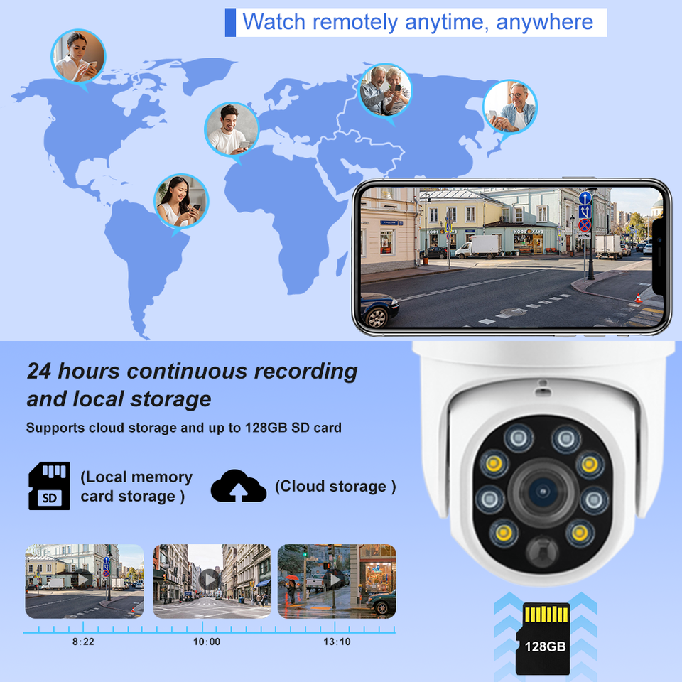 Visión nocturna, Detección de movimiento, A todo color, Micrófono incorporado, Construido-En sirena, PAN-TILT, RESET, De Audio de dos vías, Impermeable / a prueba de mal tiempo, De ángulo ancho