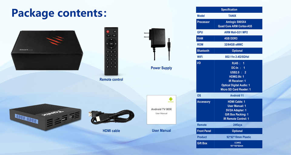 TV Box Android 11.0 Tanix X4 4GB 32GB S905X4 2.4G/5Ghz Wifi Quad Core 4K Set-top Box