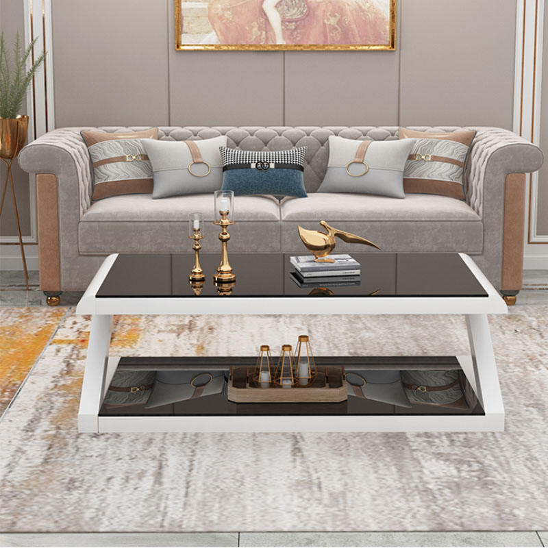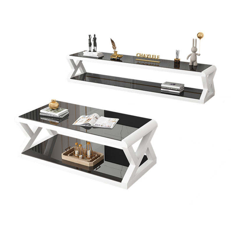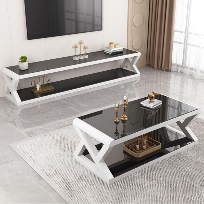 Mueble para TV de Diseño Moderno, Conjunto de Mueble para TV y Mesa de Centro, Muebles de Salón, Mesa de Centro de Acero Lacado y Vidrio Templado