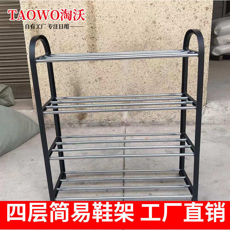 Zapatero Tw de cuatro niveles, negro, duradero, independiente, almacenamiento multicapa para uso en el dormitorio del hogar