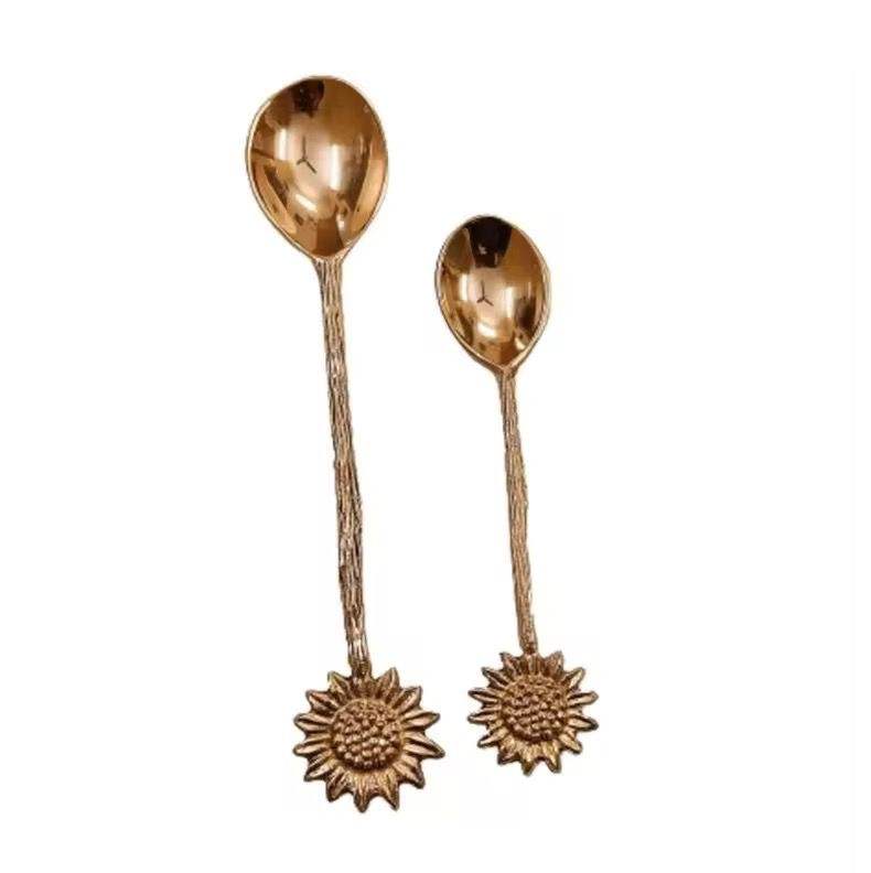 Juego de esparcidor de queso con diseño de ramita en Steen y mango de latón con cuchara de espejo plateado de acero, cuchara de mesa
