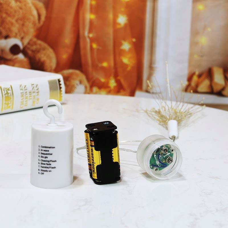Luces LED Decorativas de Alambre de Cobre con Forma de Estrella, 8 Funciones, Funcionan con Pilas, Clasificación IP44, Luz Blanca Cálida Regulable, Luces Navideñas