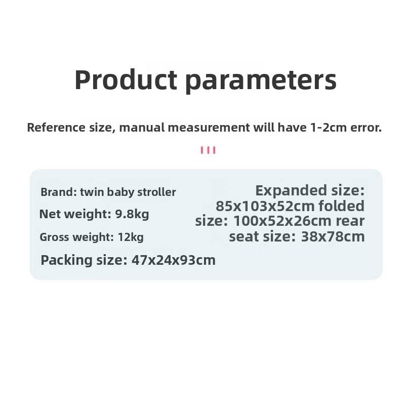 Cochecito Doble para Gemelos, Asiento Delantero/Trasero, Ligero, Plegable, Reclinable, con Empuñadura Metálica, para Segundo Hijo, Tamaño Grande