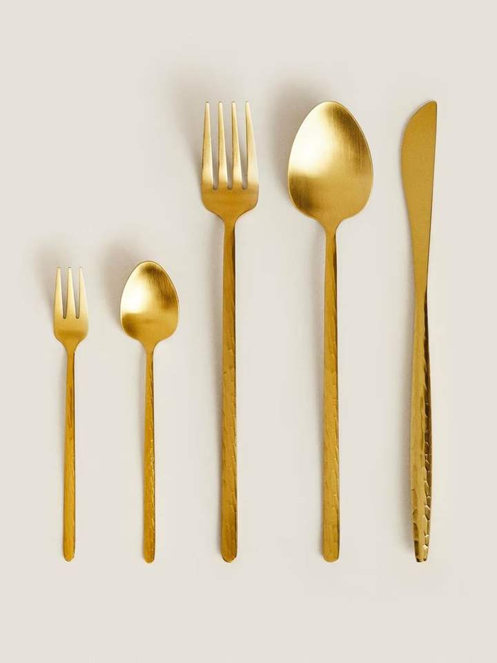 Juego de Cubiertos de Acero Inoxidable con Diseño Trenzado, Juego de Cubiertos de Acero Inoxidable con Acabado Dorado Espejo para Bodas