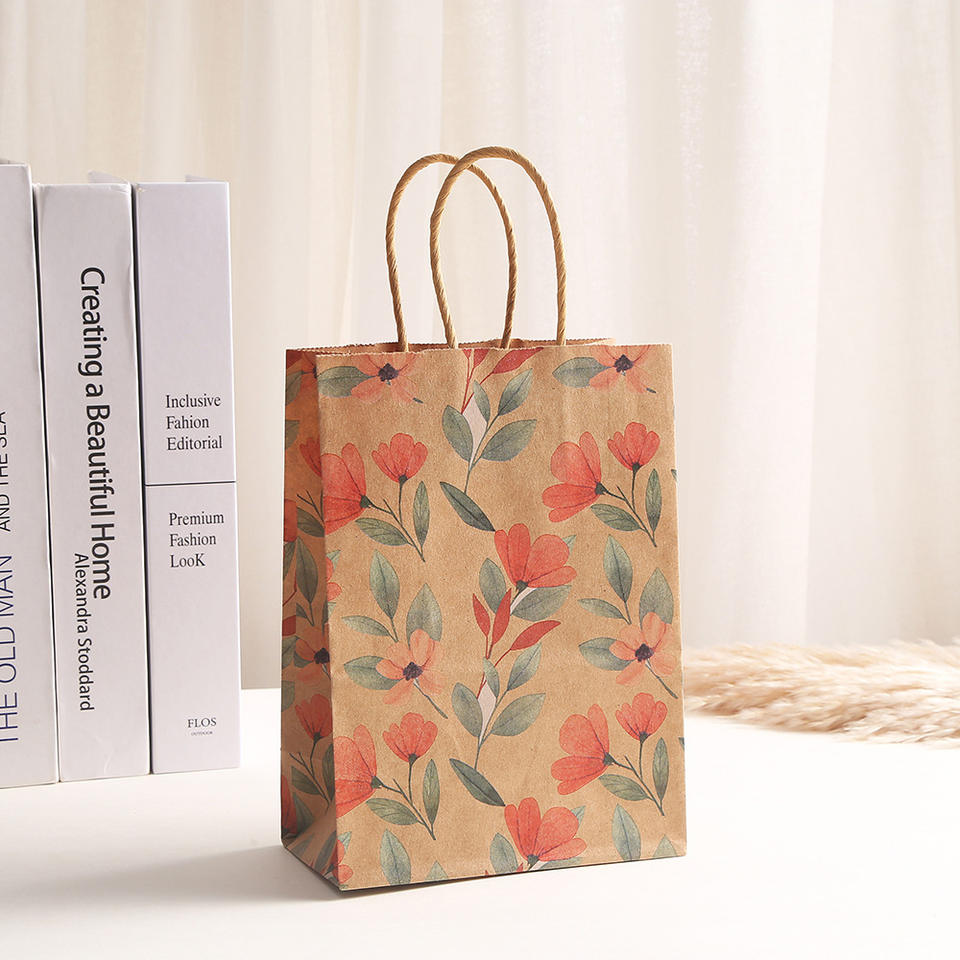 Bolsa de Papel con Asas Retorcidas, Impresión Personalizada, Bolsa de Papel Kraft, Bolsa de Papel Artístico, Bolsa de Papel Vintage con Diseño Floral Botánico para Regalos y Compras