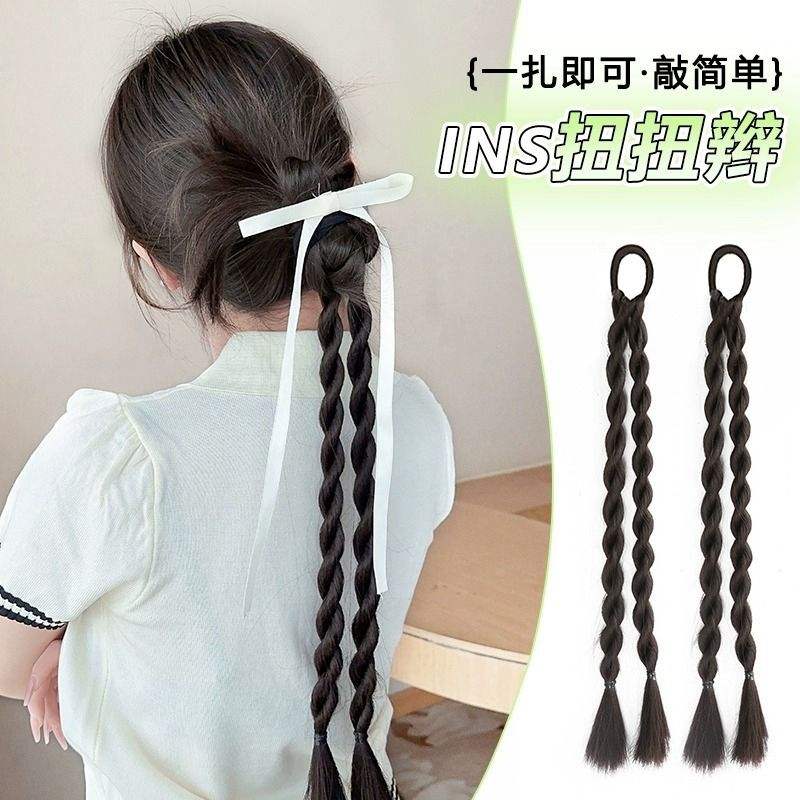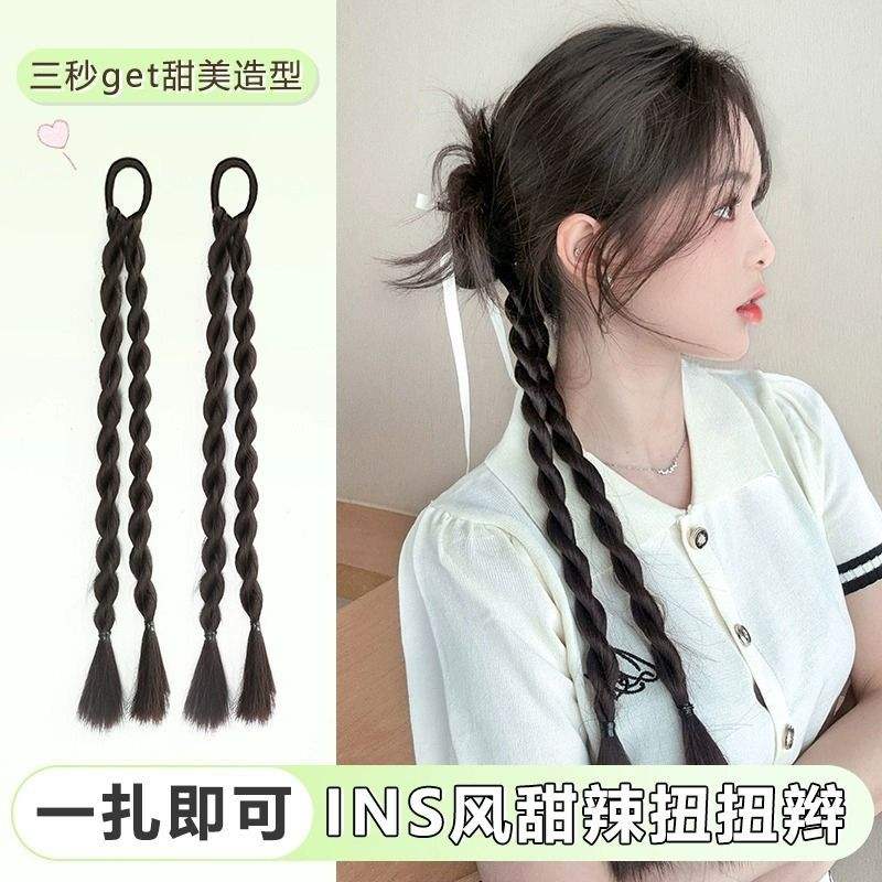 Extensiones de Cabello Trenzadas de Dos Hilos, Cola de Caballo Larga y Realista para Mujer, Material de Fibra Resistente a Altas Temperaturas