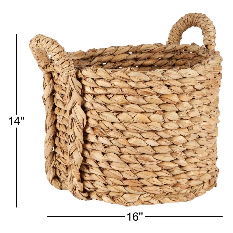Cesta retorcida de jacinto de agua:Tamaño: D16 x H14 pulgadas