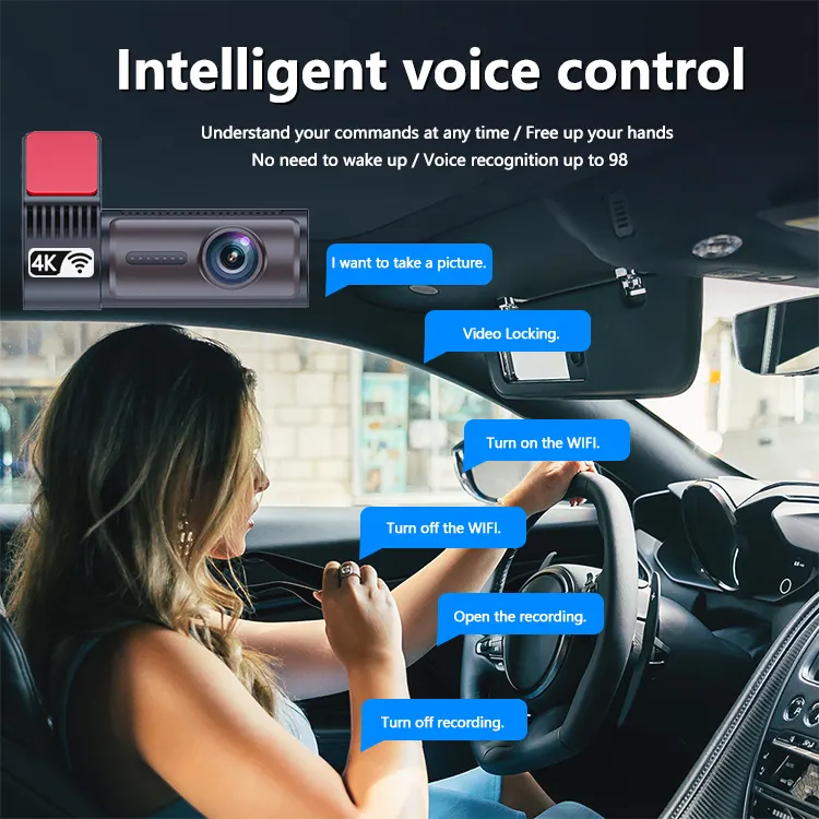 Cámara para Coche de Doble Canal 4K+FHD con Wi-Fi 2.4G, GPS y Grabación de Conducción, Compatible con Aplicaciones, en Color Negro