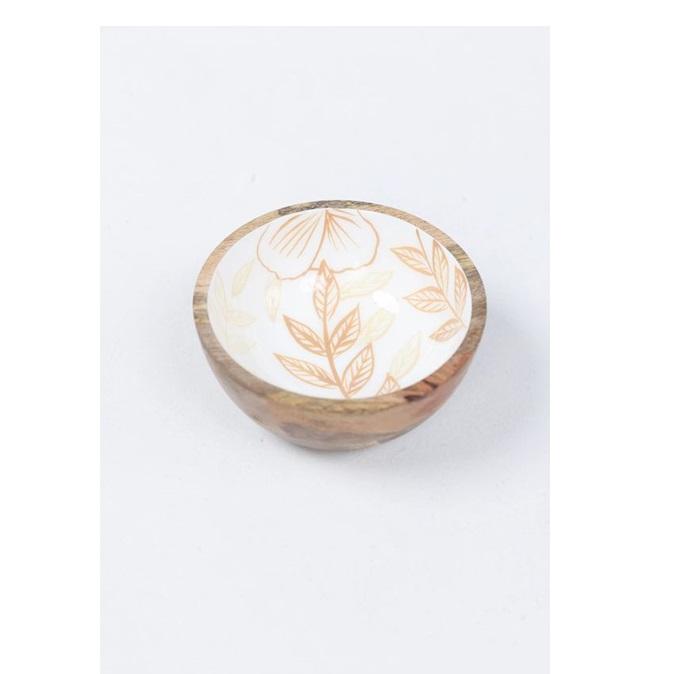 Ensaladera de madera decorativa de esmalte hecha a mano de dos colores, cuenco de madera de mango de diseño impreso personalizable para uso multiusos