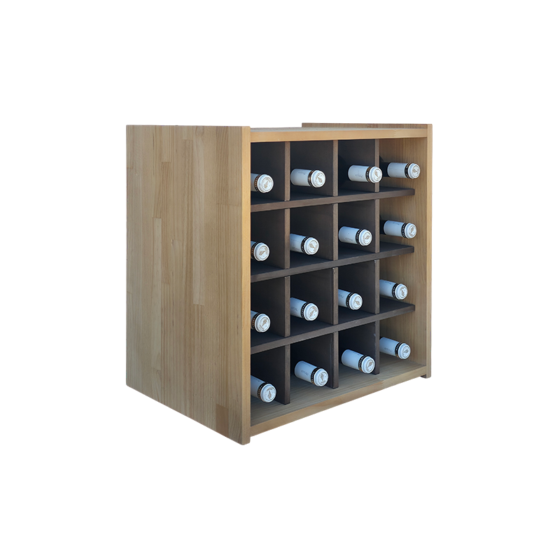 Botellero modular bicolor con 16 ranuras individuales para botellas estándar combinable sin tornillos con otros iguales