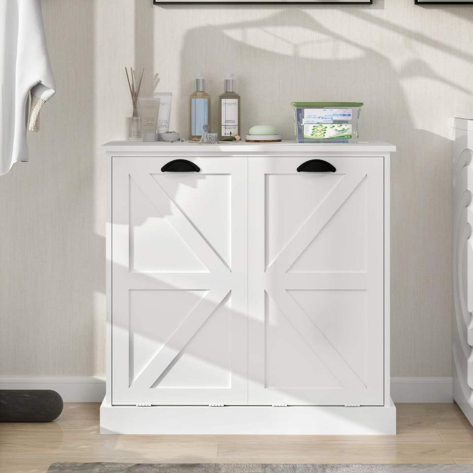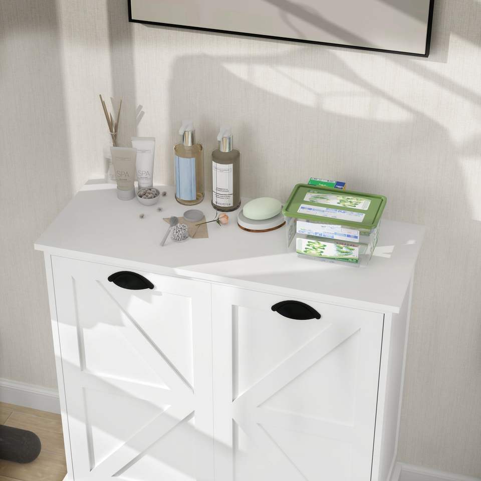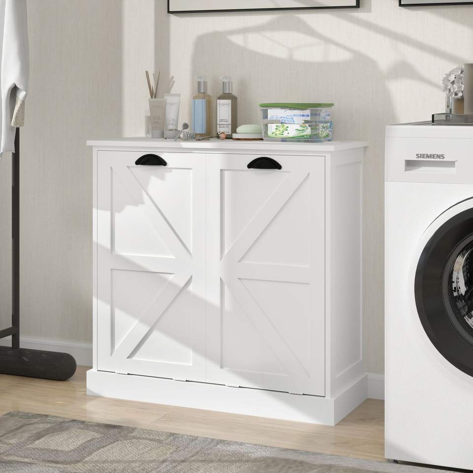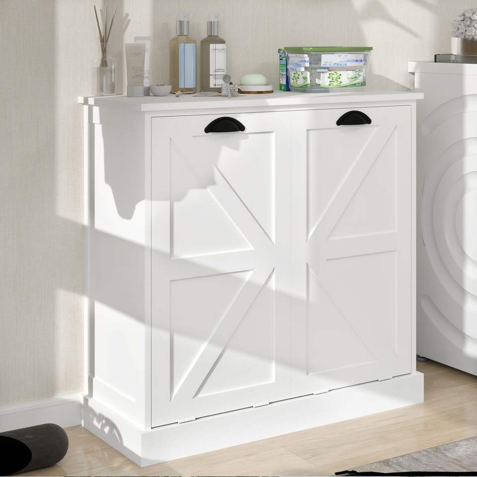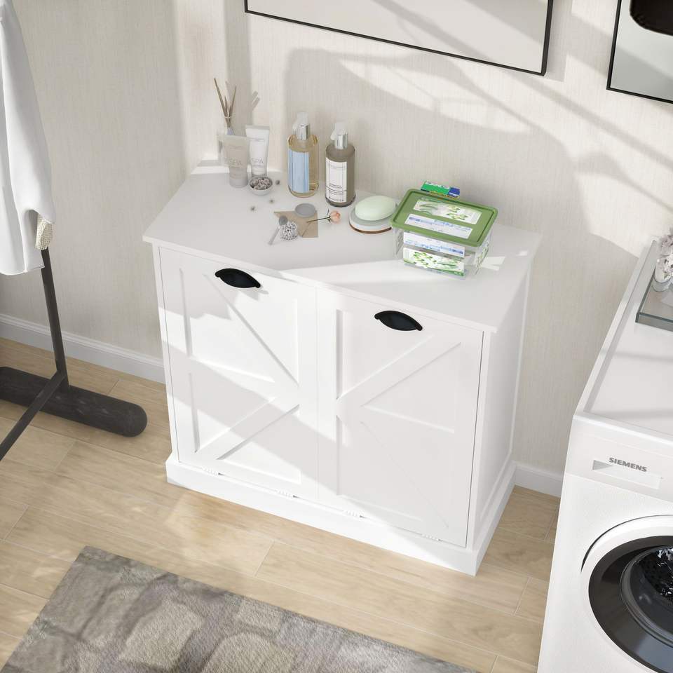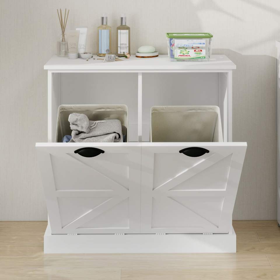 Cesto de Ropa Sucia con Dos Compartimentos, Inclinable, Blanco, con Cestas de Clasificación Premium