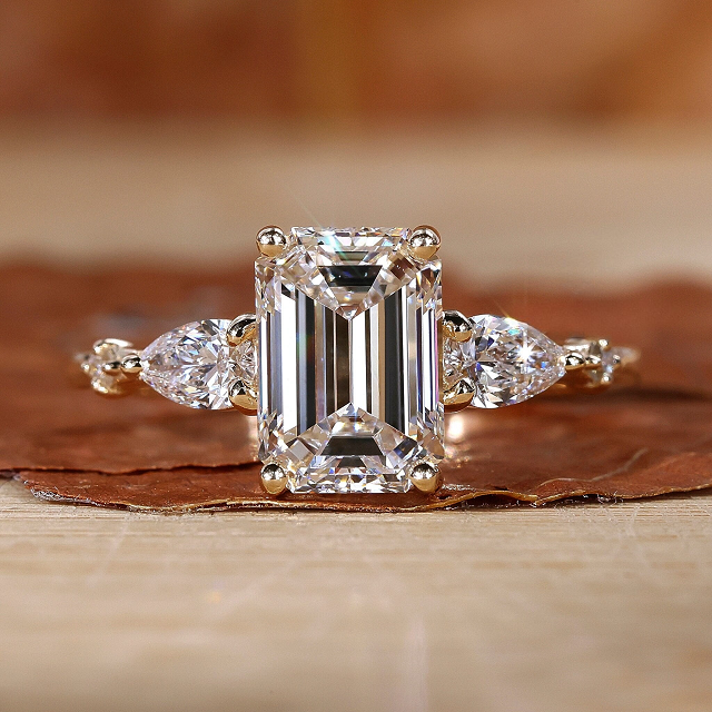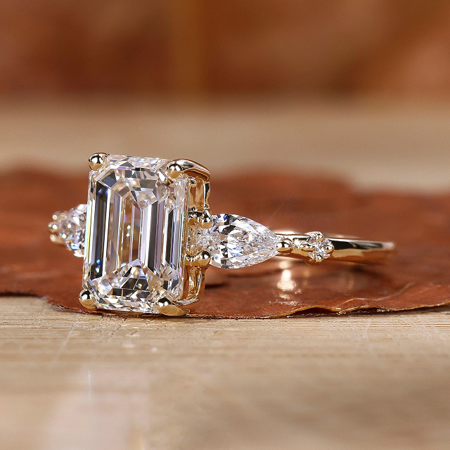 Anillo de dos diamantes con Esmeralda y corte de pera, diamantes cultivados en laboratorio, regalo de boda o compromiso para sus diamantes sueltos