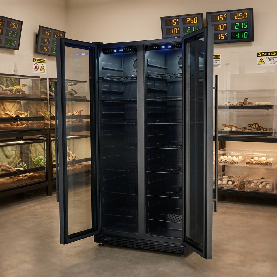 Incubadora de Reptiles de Dos Puertas con Gran Pantalla Digital, Temperatura Constante, 356L, 1000 Huevos, Incubadora Segura para Huevos de Serpientes y Lagartos
