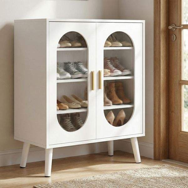 Zapatero de Dos Puertas con Tira LED USB, 24 Botones Ajustables, Lámina de Policarbonato, Cuatro Niveles Internos, Personalizable