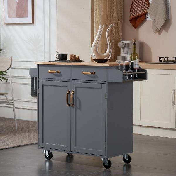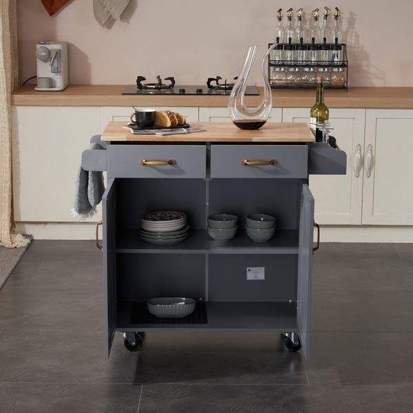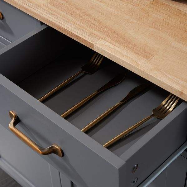 Two Doors One Drawer MDF Rubber Wood Gray Spray Paint Dining Cart 99.5*40*85.5cm Kitchen Islands & Carts