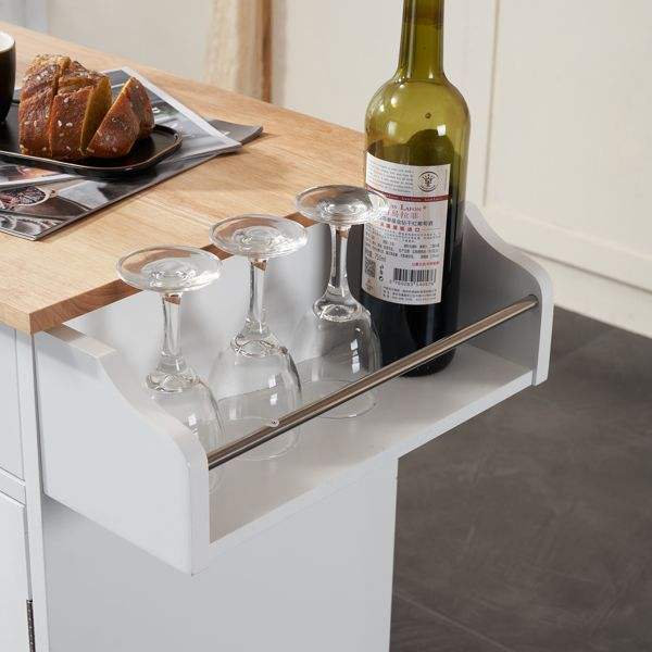 Carrito de Comedor de MDF y Madera de Caucho con Dos Puertas y Un Cajón, 99.5*40*85.5cm, Pintura Blanca en Aerosol, Isla de Cocina y Carrito