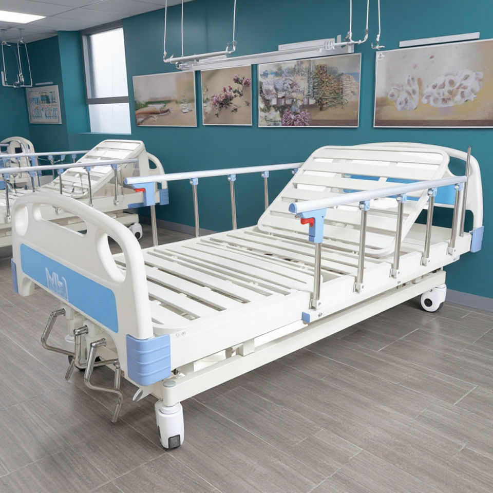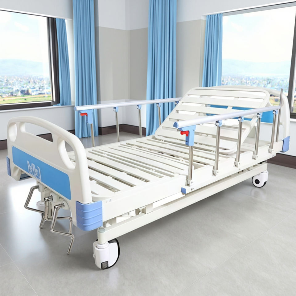 Cama de cuidado de Enfermería Médica ICU de dos funciones Cama de paciente de hospital manual de 2 manivelas para muebles de clínica y hospital