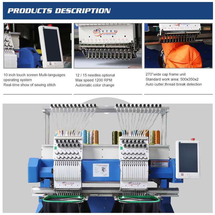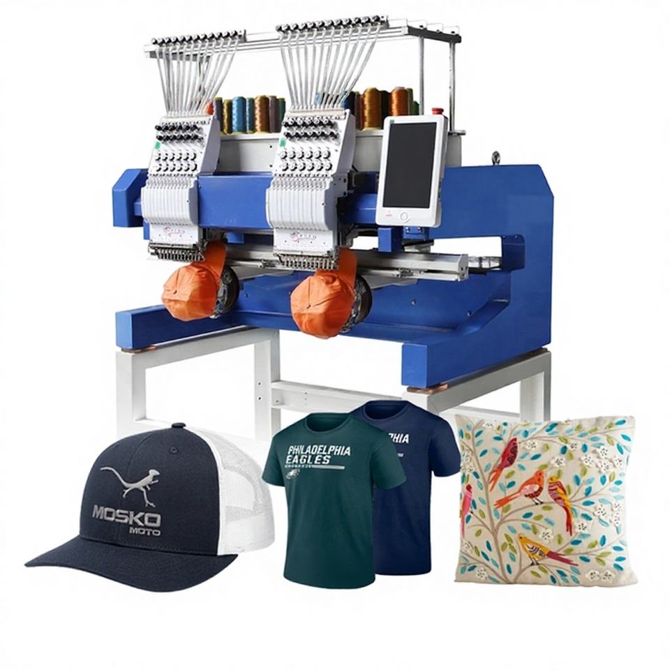Máquina de Bordar Computarizada de Dos Cabezas y 12 Agujas, Alta Eficiencia, 1000 RPM, para Bordar Gorras y Camisetas - Mejor Precio
