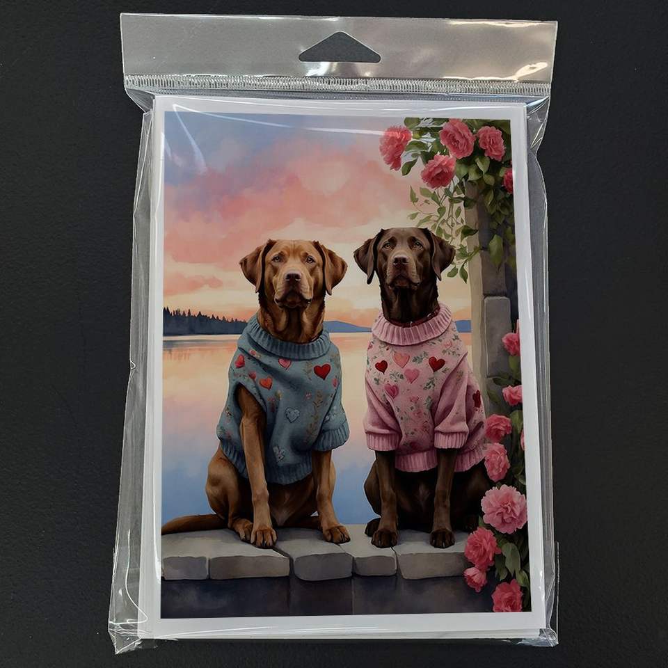 Paquete de tarjetas de felicitación Two Hearts Chesapeake Bay Retriever, 8 tarjetas de notas en blanco, sobres caprichosos A7, tamaño 5x7 para notas personales
