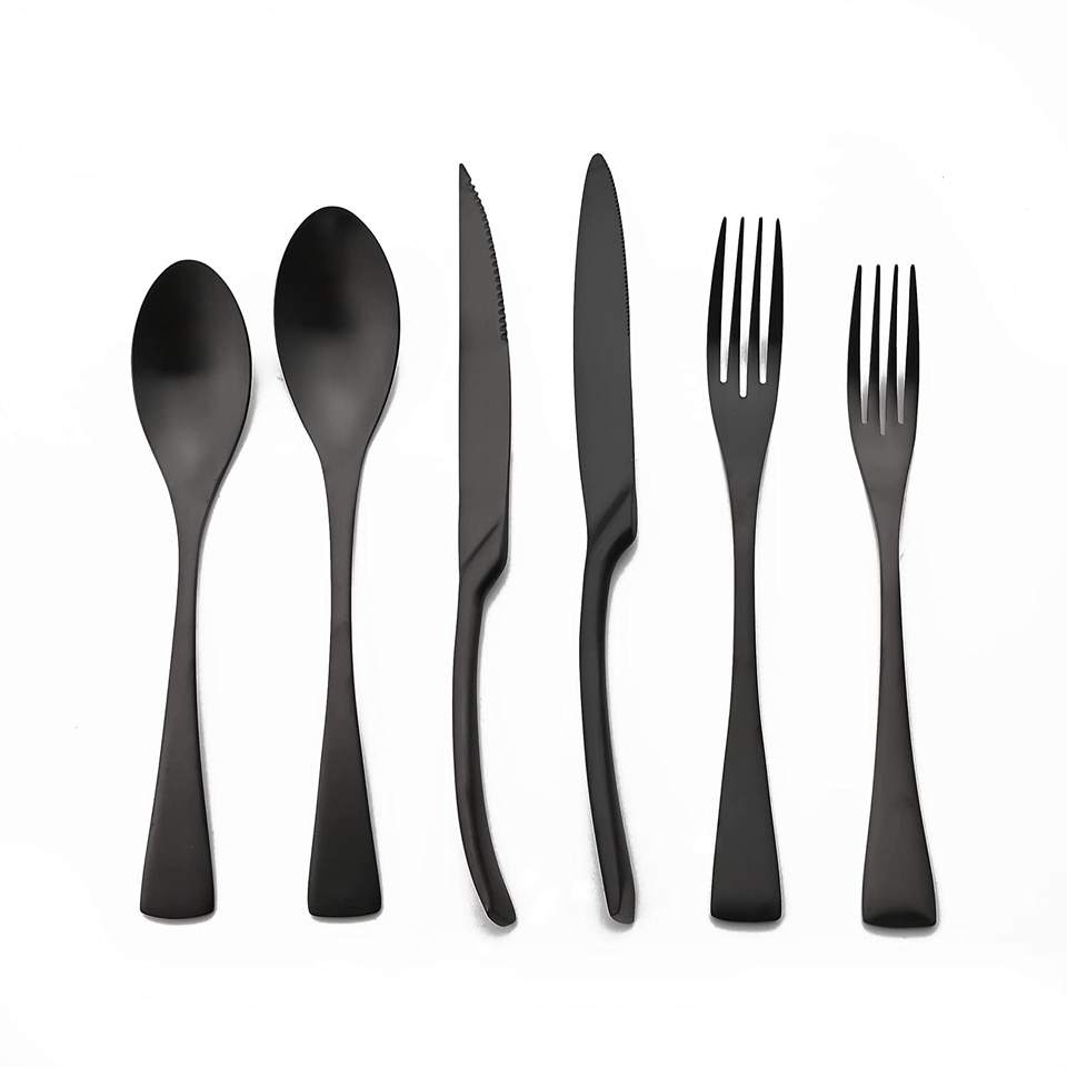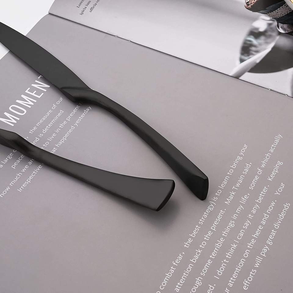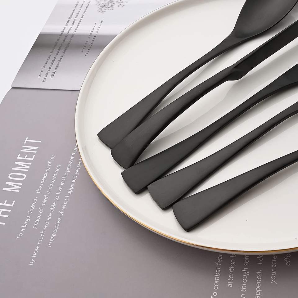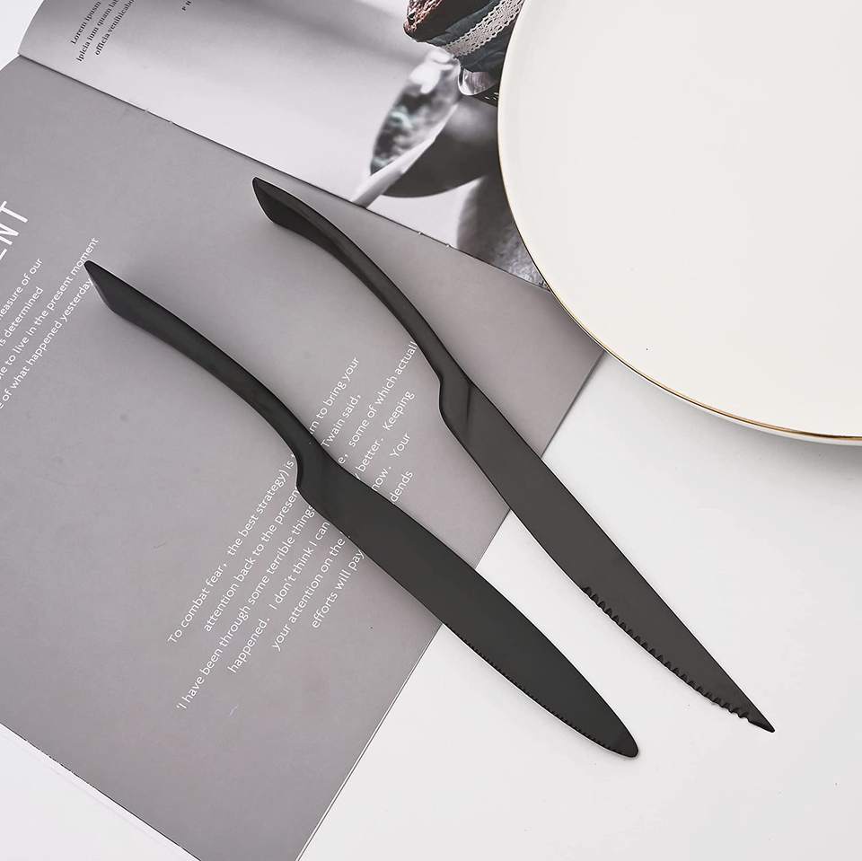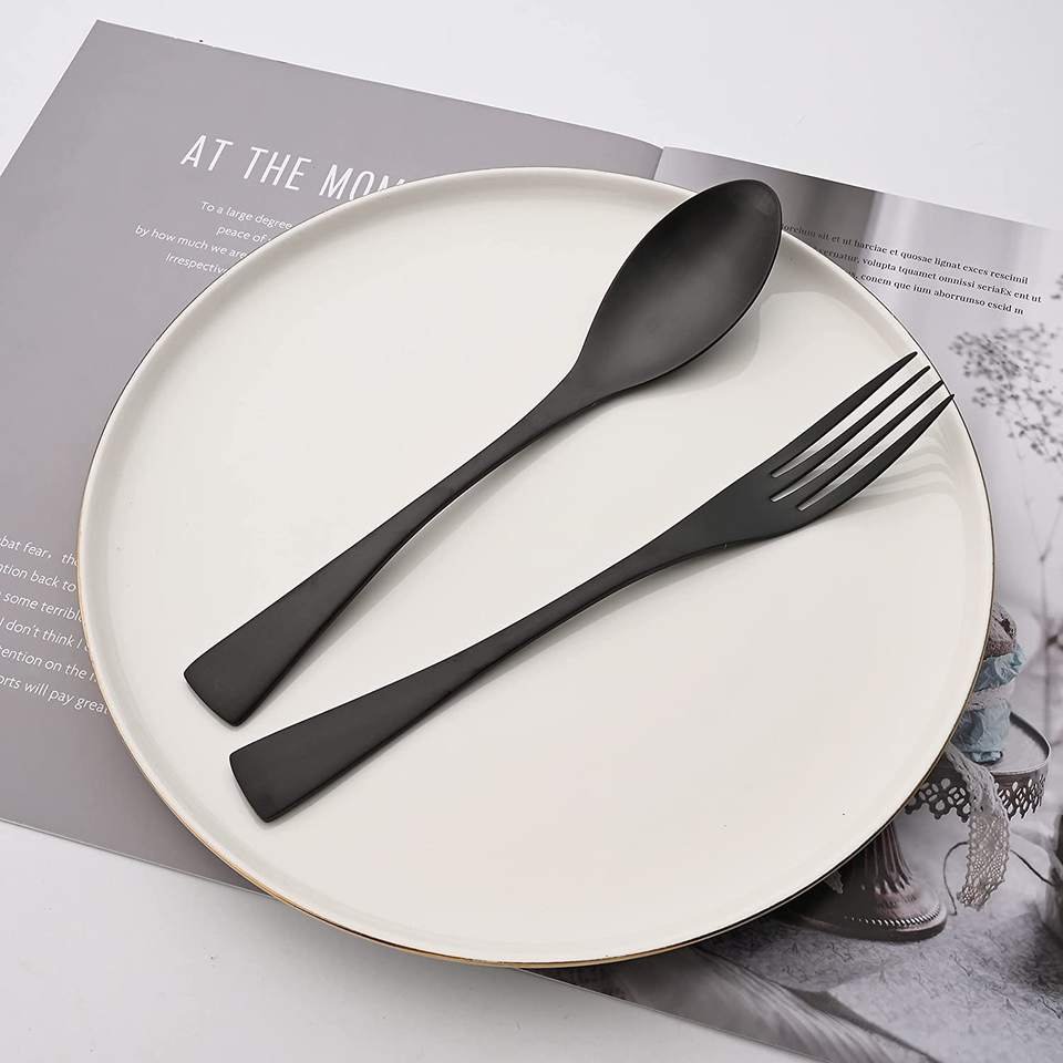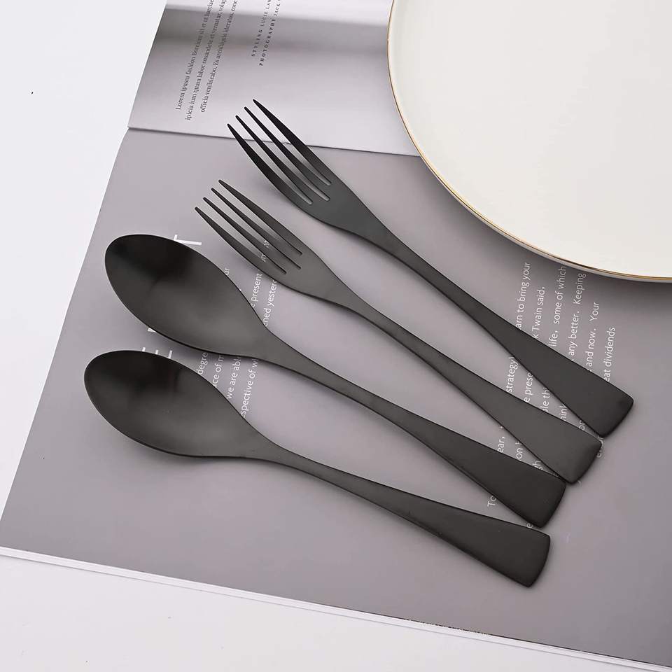 Dos cuchillos, 2 cucharas, dos tenedores, juego de utensilios de cocina con revestimiento negro, pulido de espejo, cubiertos, proveedor mayorista, fabricación