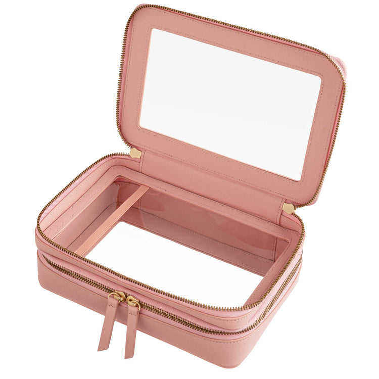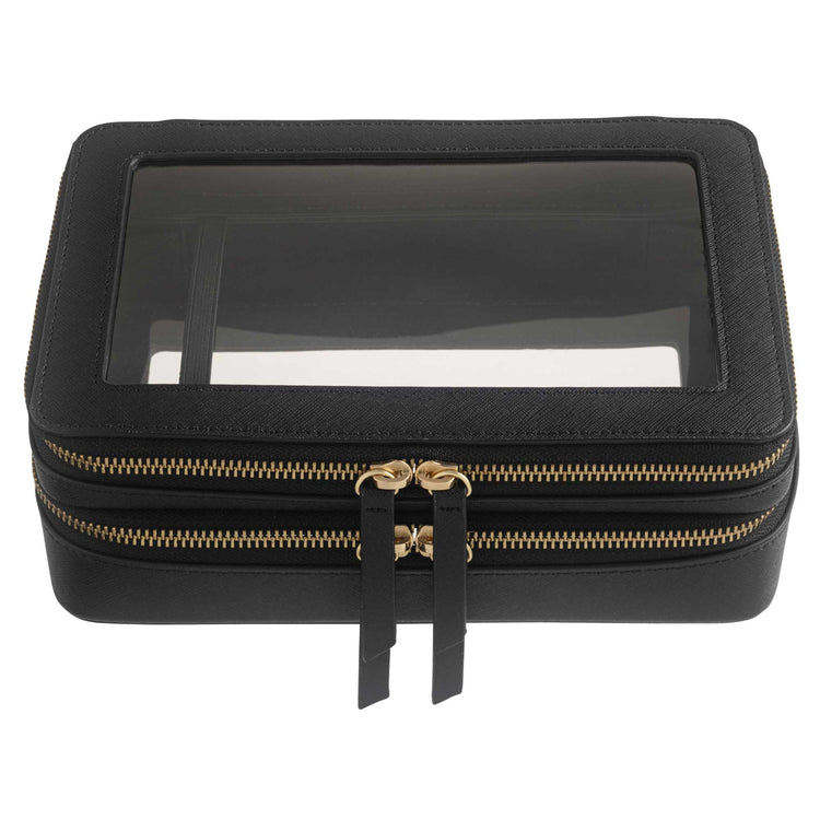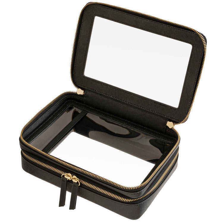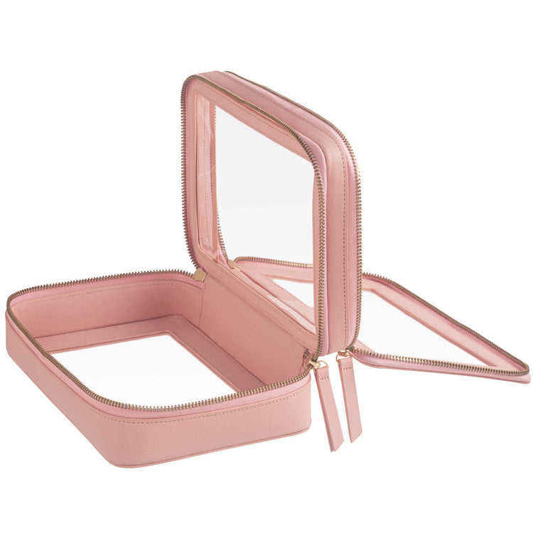 Caja de viaje de Tpu con cremallera de dos capas, estuche de viaje transparente de cuero Pu Saffiano, brochas de maquillaje, estuche de viaje para cosméticos