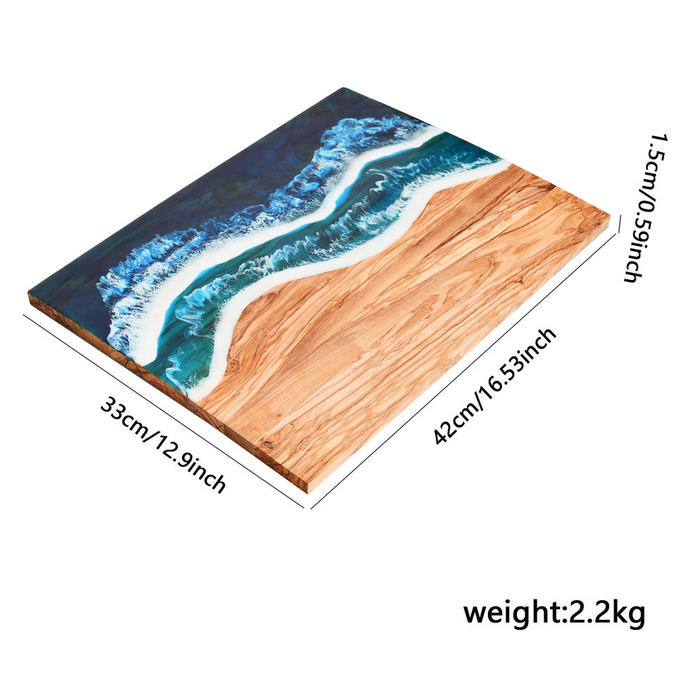 Nombre:Tabla de cortar de madera y resina con el patrón de las olas del océano