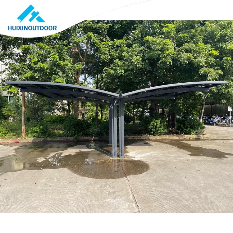 Cochera de dos modelos de metal con techo de aluminio, parasol para coche de invierno, cochera de techo de policarbonato