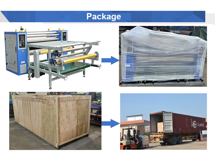 Máquina de sublimación Calandra de transferencia de calor rotativa completamente automática con pantalla táctil de dos PLC con prensa de calor directa de fábrica