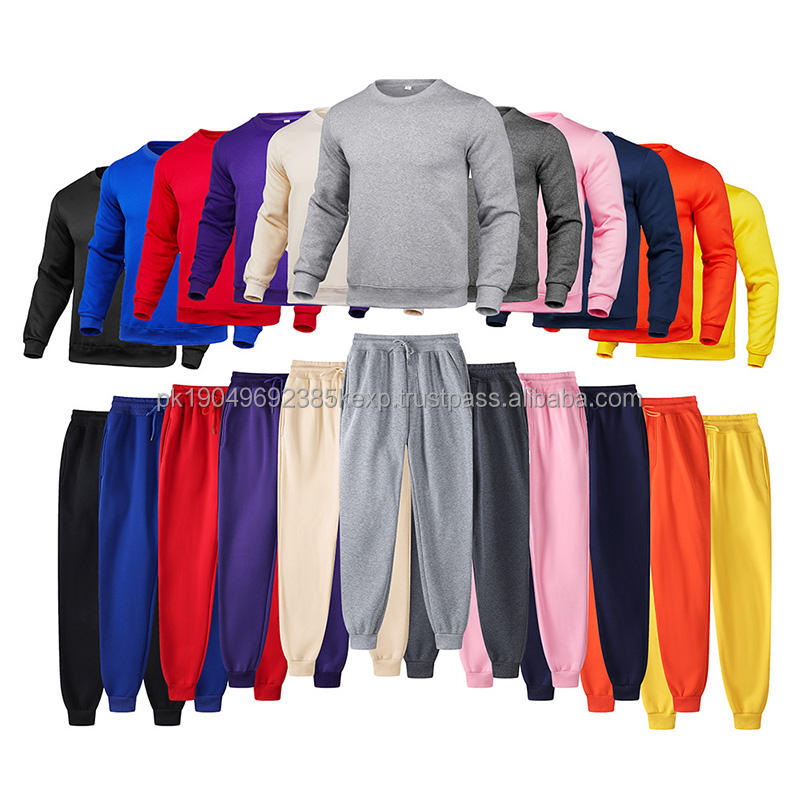 Conjunto de Dos Piezas Personalizado para Hombre, Sudadera de Invierno con Cuello Redondo, Lisa, Teñida, de Poliéster, de Manga Larga y Pantalones Deportivos
