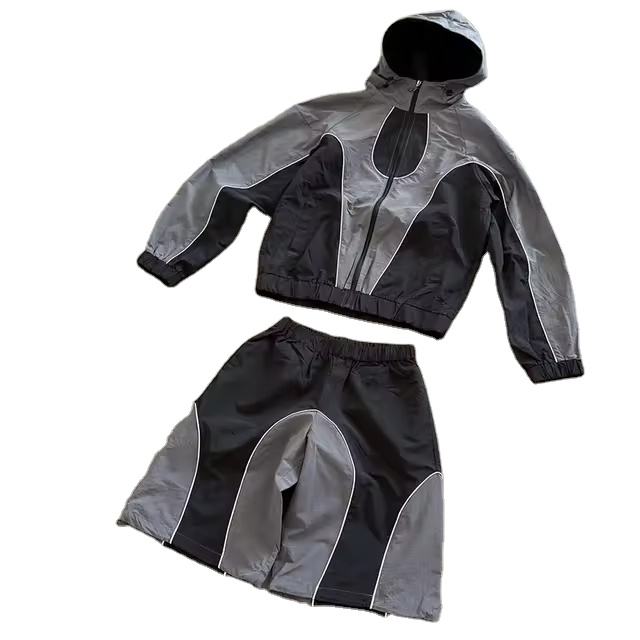Conjunto Deportivo de Dos Piezas Personalizado para Hombre, Chaqueta Cortavientos y Pantalones Cortos de Primavera, Ropa Deportiva Ligera, Transpirable, con Cordón Ajustable, Reflectante, de Nailon
