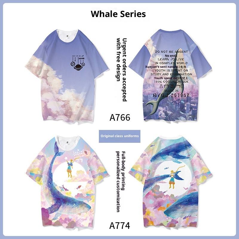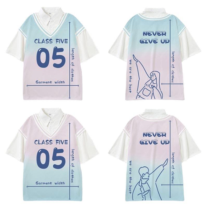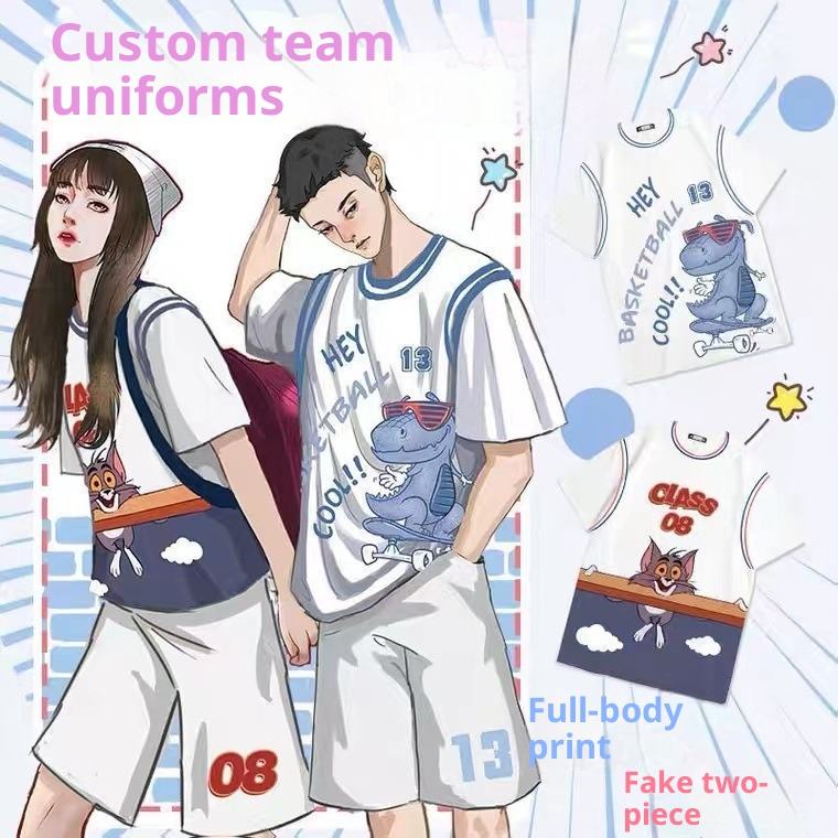 Dos piezas escote Halter patrón de dibujos animados impresión Digital clase uniforme grupo edificio manga corta Escuela Primaria secundaria