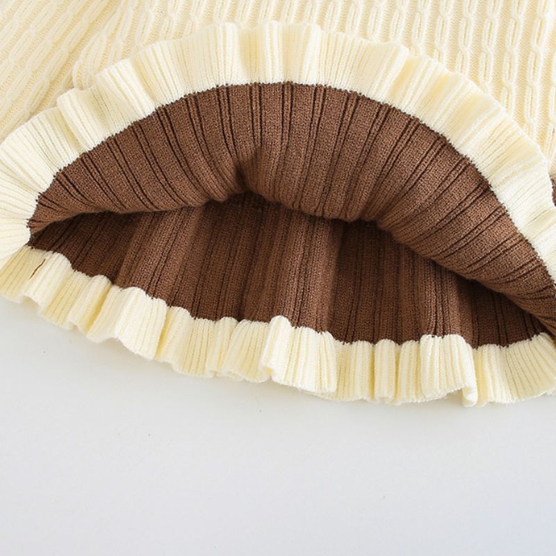 Conjunto de falda de punto de dos piezas para niños con suéter de flores de solapa grande de manga larga y falda de botón dulce para primavera