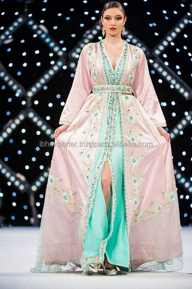 Caftán de dos piezas con cuello en V con estilo abierto frontal con cuentas brillantes y trabajo bordado Aspecto fantástico para ropa islámica