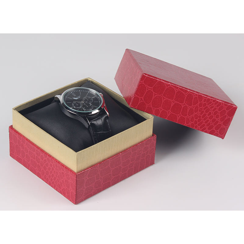 Caja de reloj de papel de polipiel roja de dos piezas, caja de regalo de pulsera para almacenamiento, caja de embalaje de brazalete de cartón