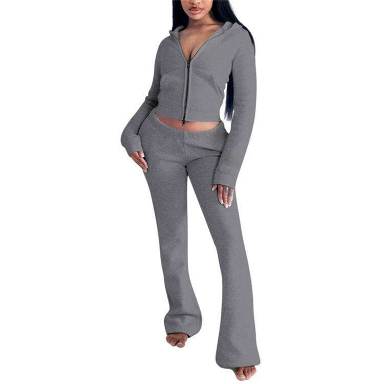 Trajes de dos piezas, conjunto de trajes cálidos de Color sólido, conjuntos de ropa de otoño e invierno para mujer, sudadera con cremallera y cuello levantado, Pantalones