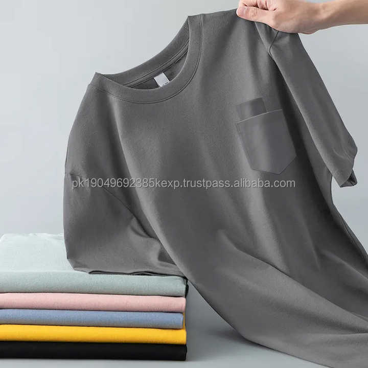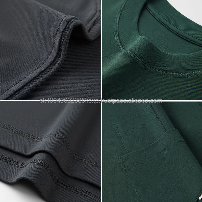 Camiseta de algodón recortada con bordado y estampado personalizado de peso pesado recortada de gran tamaño con dos bolsillos, camisetas de doble bolsillo 300 Gsm para hombres