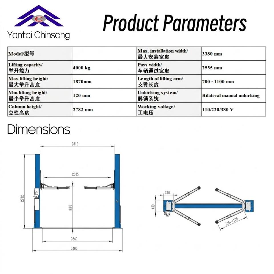 Nombre del producto:Elevador de coches de dos postes