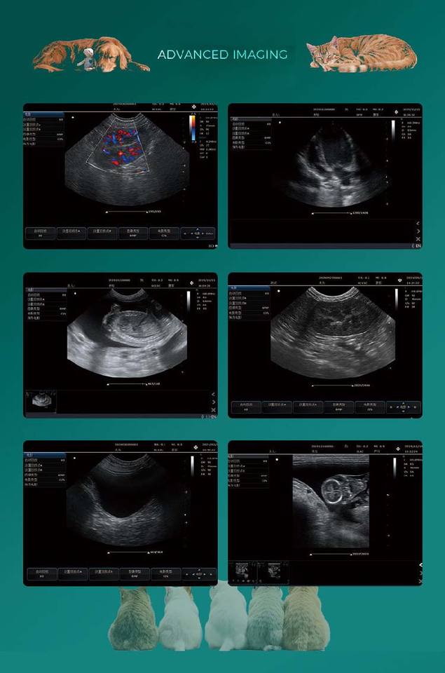 Dos sondas se pueden utilizar simultáneamente Sistema de ultrasonido de diagnóstico veterinario Ultrasonido veterinario Monitor LCD médico de 2 pulgadas