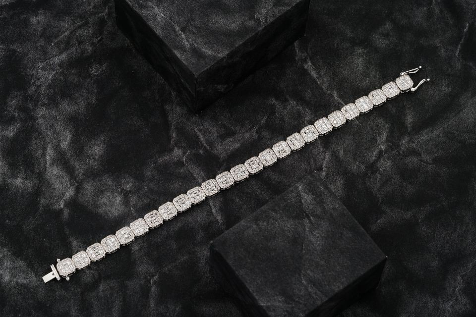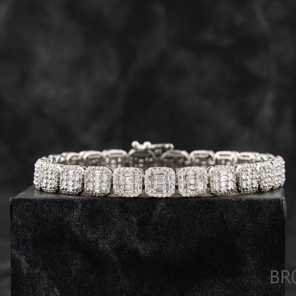 Pulsera de Cadena Cubana de Dos Hileras con Diamantes Naturales VVS, Plateada, Nuevo Diseño, Regalo para Fiestas, de India, Luxira Jewels
