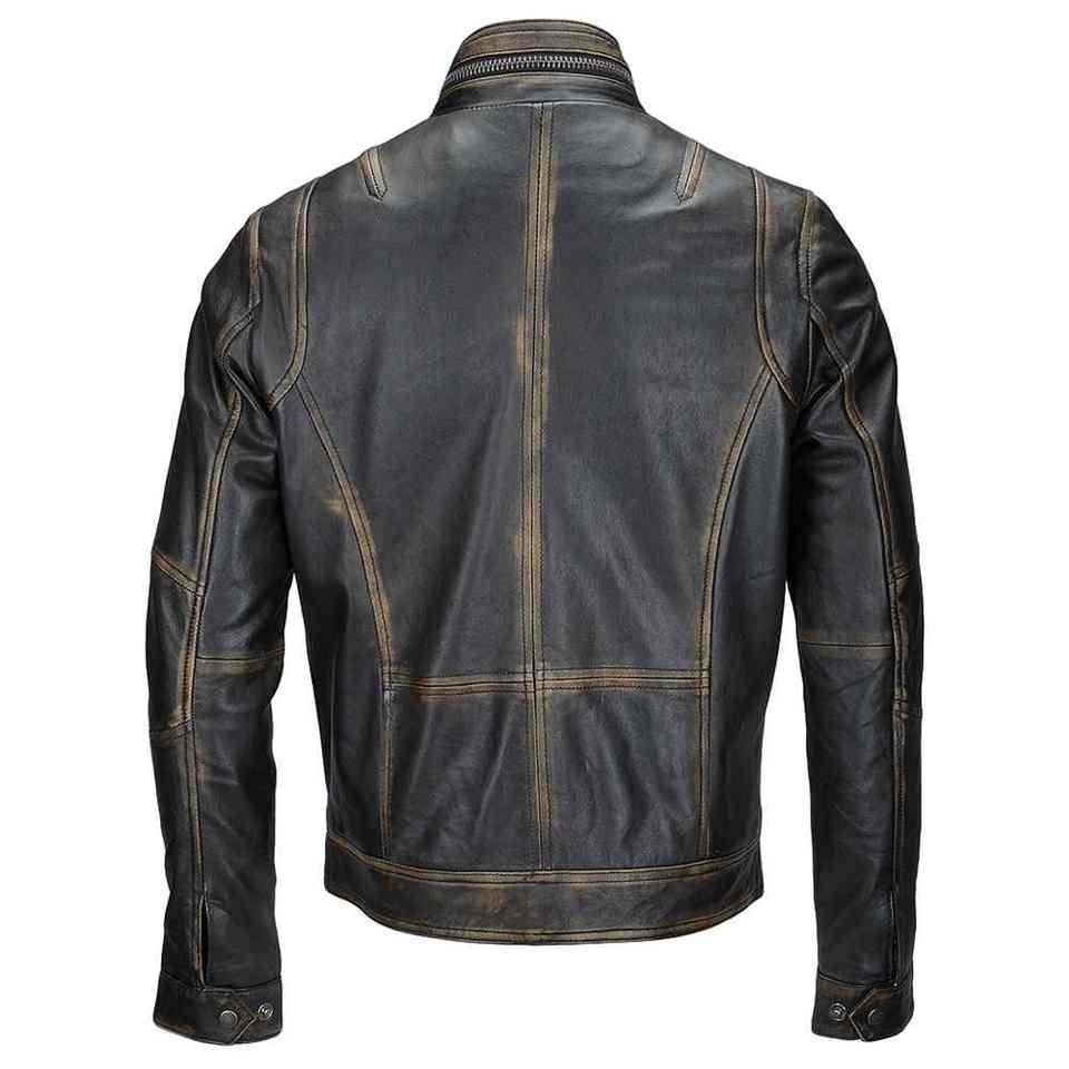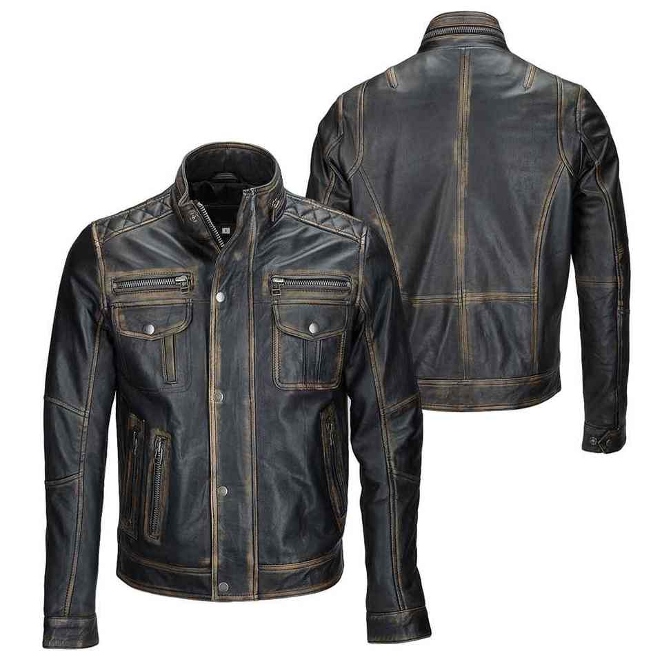 Chaqueta de Cuero con Dos Bolsillos Laterales, Chaqueta de Invierno, Diseño de Motociclista, Chaqueta de Cuero Personalizada con Detalles Acolchados de Piel de Oveja para Hombre