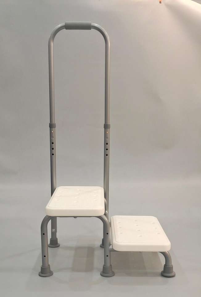 Taburete de dos escalones con asa y plataforma antideslizante, taburete médico resistente de 2 escalones para adultos, capacidad para Discapacitados de hasta 500 libras