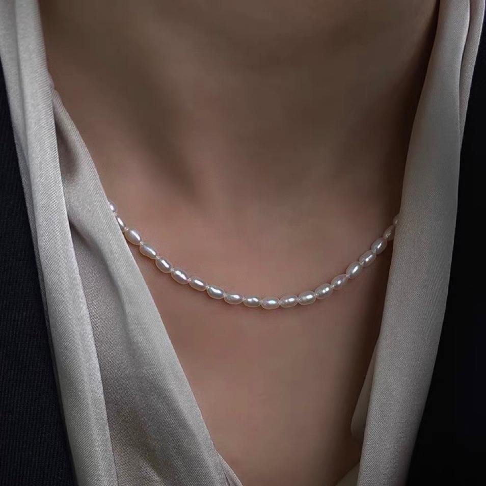 Collar de Perlas de Mijo Natural de Dos Hilos, Chapado en Oro de 14K, Estilo Lujoso y Moderno para Mujer