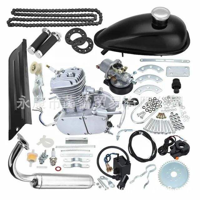 Kit de Motor de Bicicleta de Gasolina Modificado de Dos Tiempos y 80cc, PK80 Plateado, Cilindro Único, Modelos de 50cc y 110cc con Arranque a Patada