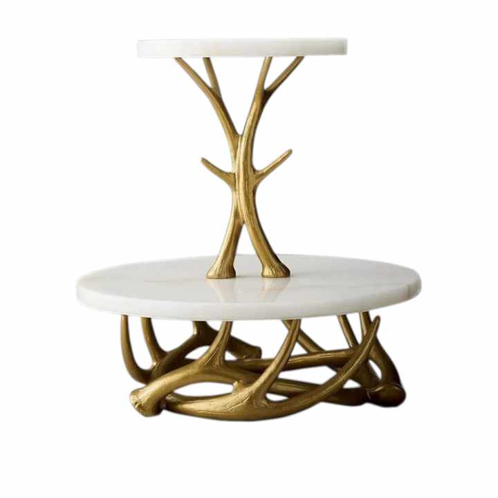 Nombre del producto:Soporte de pastel de asta redonda de dos niveles con placas de mármol y marco de aluminio