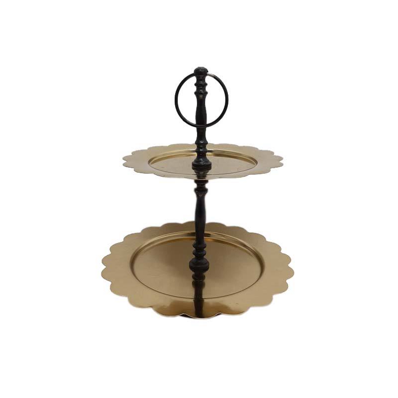 Two Tier Metal Round Shape Elegant Design Cake Stand Gold & Black Finished for Birthday Event Party Display Stand Handmade