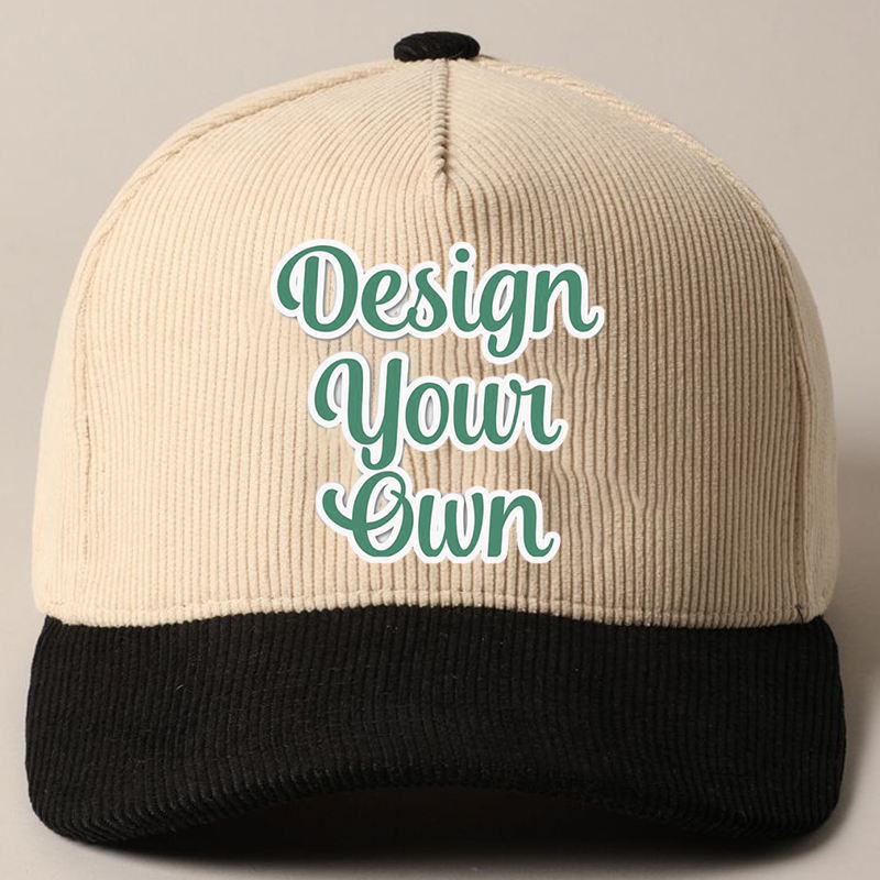 Gorras de Béisbol de Pana de Dos Tonos, Sin Estructura, con Logotipo Bordado Personalizado, Gorras Deportivas