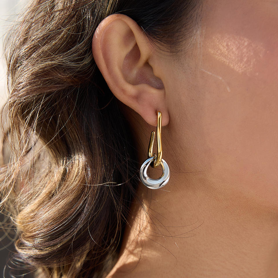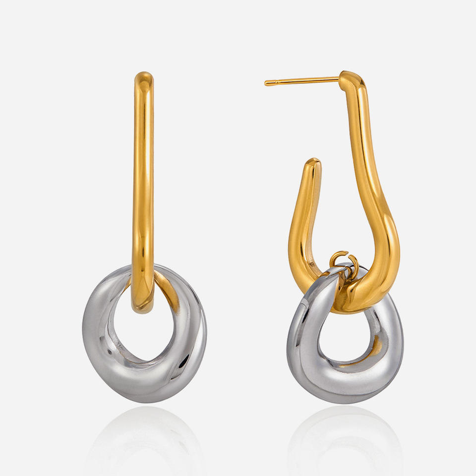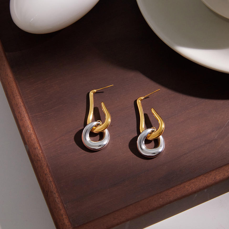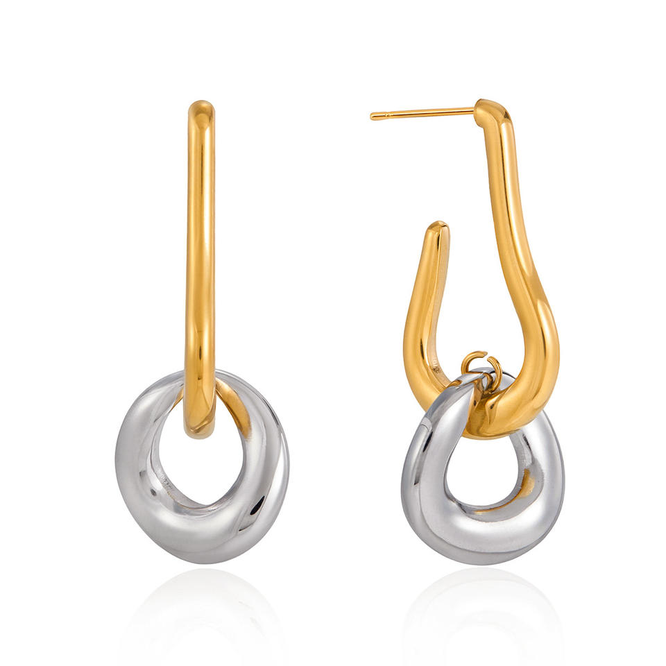Pendientes de aro de doble tono en acero inoxidable 18K con diseño geométrico para mujer, joyería de lujo ligero, regalo.