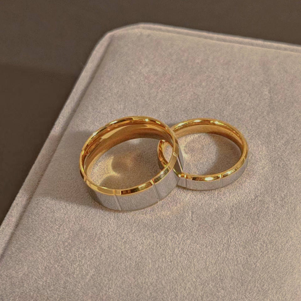 Anillos de Pareja Minimalistas de Acero de Titanio en Dos Tonos Dorados, Geométricos, con Cuentas Cuadradas Biseladas, para Boda, Unisex, SA539