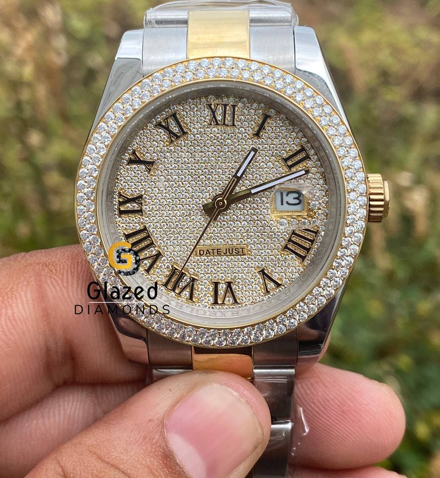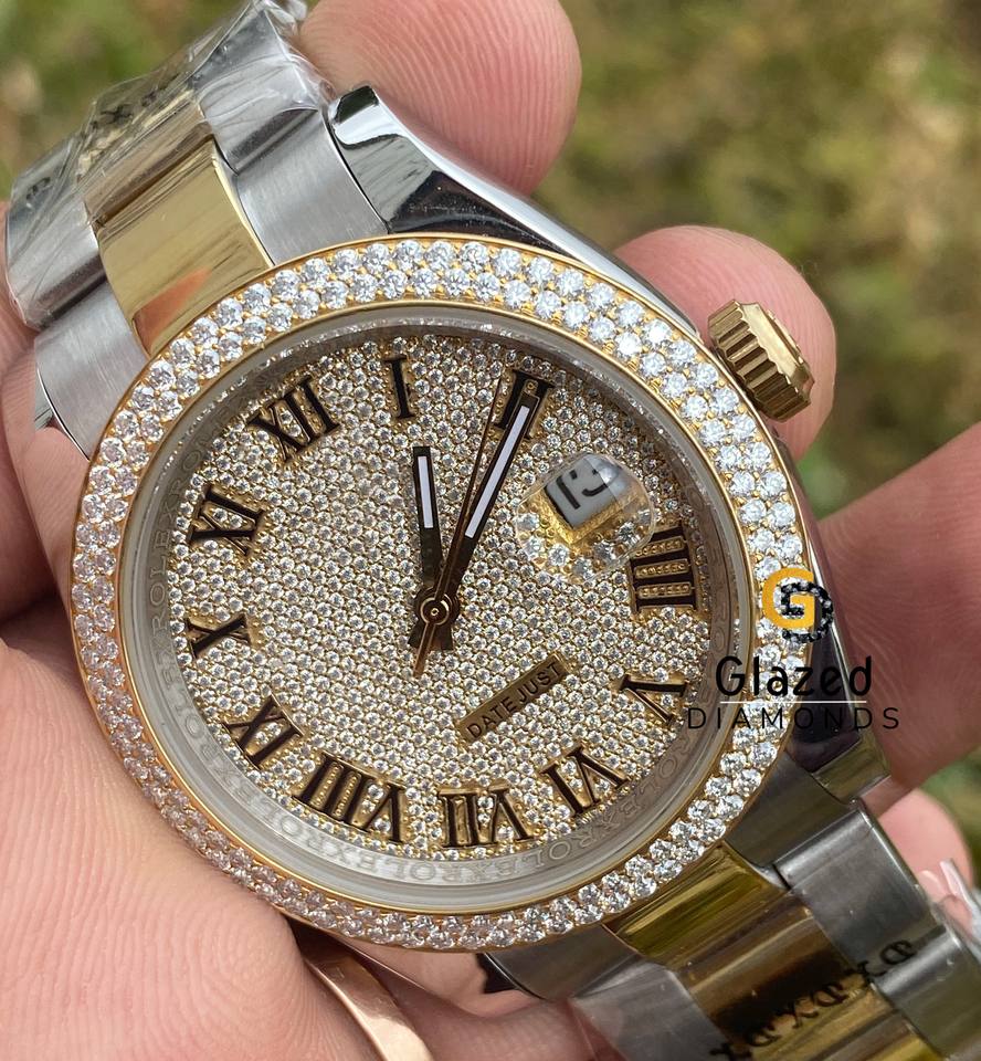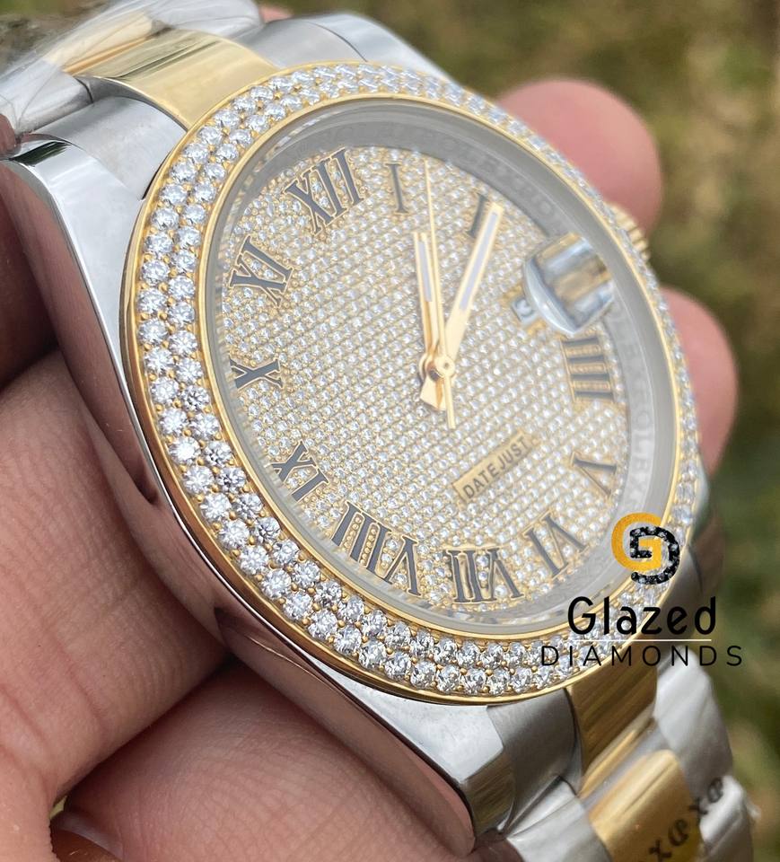 Reloj de pulsera Hip Hop de dos tonos para hombres mejorado con diamantes de moissanita de claridad Vvs de corte brillante redondo