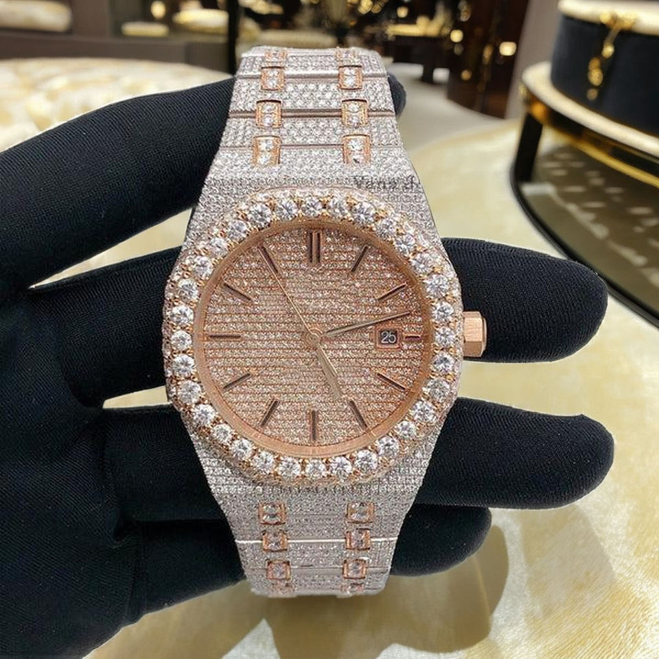 Reloj automático de acero inoxidable de dos tonos para hombre de alta calidad Moissanite Diamond 41mm esfera analógica cristal completamente helado reloj